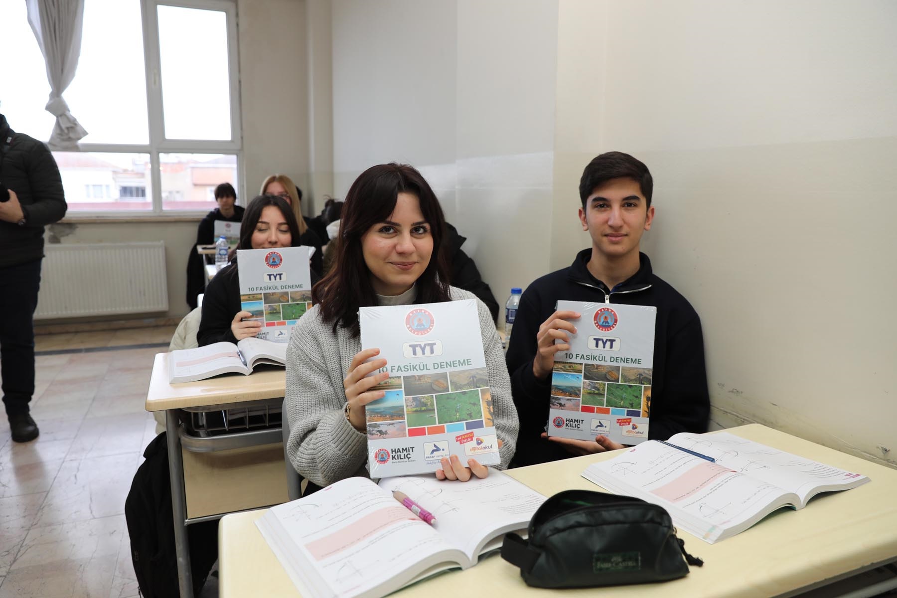 Bu kapsamda ilçede LGS’ye girecek 8. sınıf öğrencilerinden (özel okullar dâhil) 1.839 öğrenciye 8’li deneme sınavı kitabı, TYT’ye girecek 12. sınıf öğrencilerinden 1.364 öğrenciye ise 10’lu deneme sınavı kitabı ücretsiz olarak dağıtılacak.