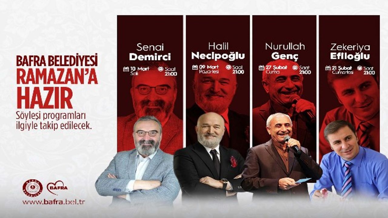 Ramazan ayının manevi iklimine uygun içeriklerle planlanan programlarda özellikle söyleşi etkinlikleri, konu ve konuklarıyla dikkat çekiyor. Alanında önemli ve ilgiyle takip edilen isimler, Ramazan boyunca Bafralılarla buluşarak gönüllere hitap edecek.