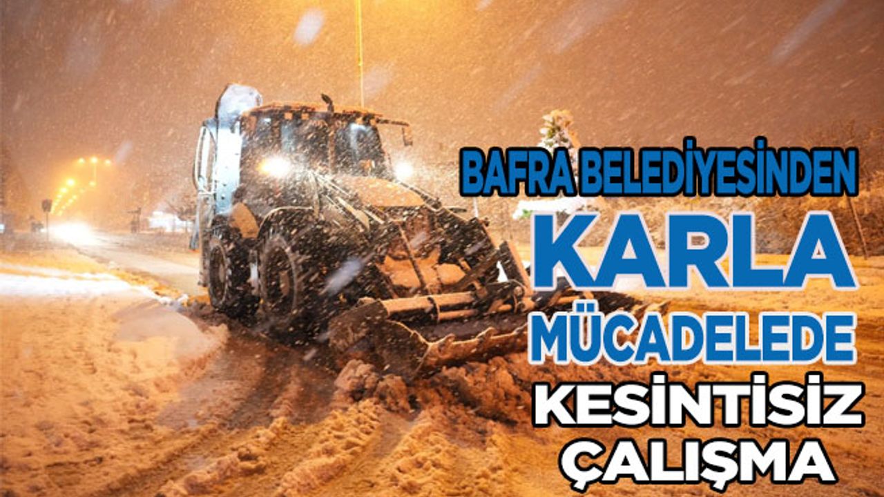 Temizlik İşleri ve Park Bahçeler Müdürlüğü ekipleri de kaldırım tuzlama ve küreme çalışmalarını Atatürk Bulvarı,Gençlik caddesi gibi ana arterler başta olmak üzere ilçe genelinde sürdürürken,Büyükşehir Belediyesi ve Karayolları ekipleri koordinasyonlu bir şekilde çalışma yürütülüyor. Bafra Belediyesi ekipleri Samsun Sinop Yolu ve Kazandere mevkiinde yoğun kar nedeniyle yaşanan sorunların kısa süre içerinde giderilmesinde etkin rol oynadı.