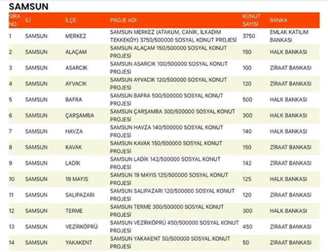 TOKİ’nin 81 ilde hayata geçireceği 500 bin konut projesi kapsamında Samsun’da 14 ilçede toplam 6397 konut yapılacak.