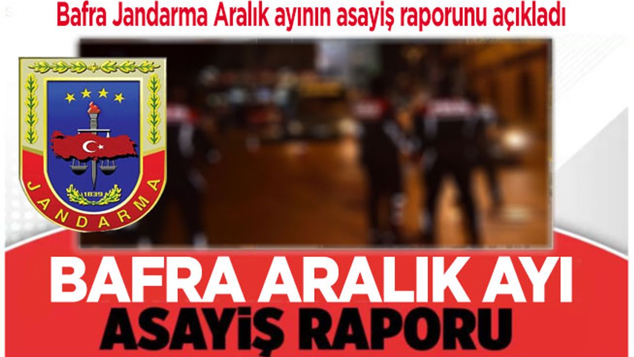 Bafra Kaymakamlığı İlçe Jandarma Komutanlığı, 2025 yılının Aralık ayına yönelik asayiş ve güvenlik verilerini paylaştı. Ay boyunca yürütülen titiz çalışmalar neticesinde suç ve suçluya geçit verilmedi.