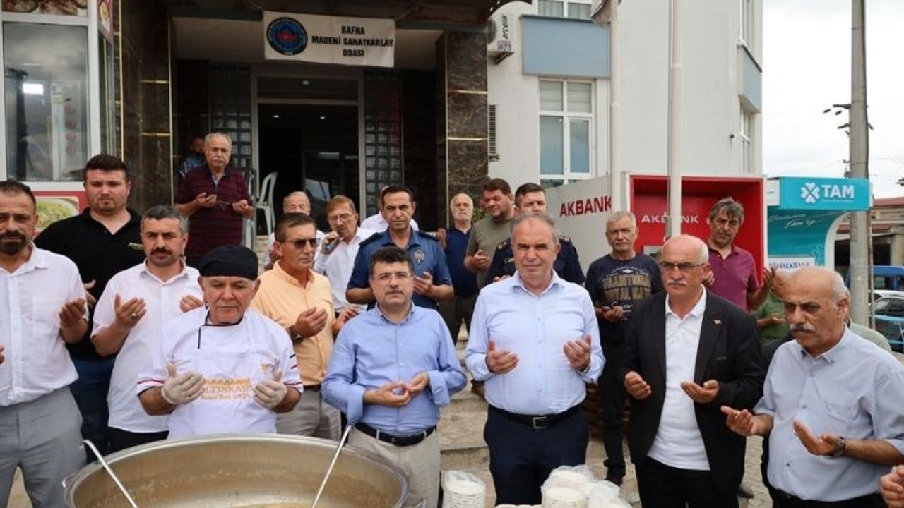 Bafra Madeni Sanatkarlar Odası Başkanı Hurşit Tulum ve yönetimi tarafından sanayi esnafına aşure dağıtımı gerçekleştirildi.Bafra Madeni Sanatkarlar Esnaf Odası her yıl olduğu gibi bu yıl da Muharrem Ayı kapsamında geleneksel aşure hayrında bulundu. Gerçekleşen aşure hayrında okunan duanın ardından 2 bin kişilik aşure ikram edildi.