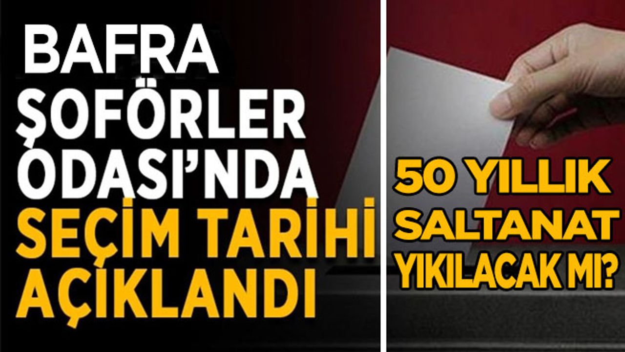 Bafra’daki şoför esnafı, 02 OCAK Cuma günü 10.00’da Şoförler ve Otomobilciler Odası Toplantı Salonunda sandık başına gidecek. Genel kurulda odanın mevcut başkanı Metin Genççakır ile Bafra Motorlu Taşıyıcılar Kooperatifi Başkanı Ali Hancı yarışacak.
