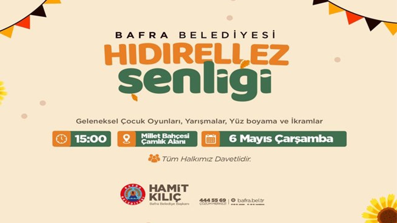 Bafra Belediye Başkanı Hamit Kılıç, “Doğanın uyanışını, bolluk ve bereketi temsil eden Hıdırellez’i, geleneklerimize yakışır bir şekilde kutlayacağız. Baharın coşkusunu paylaşacağımız, birlik ve beraberliğimizi pekiştireceğimiz Hıdırellez Şenliği’mize tüm hemşehrilerimi davet ediyorum” dedi. edeceğiz.”