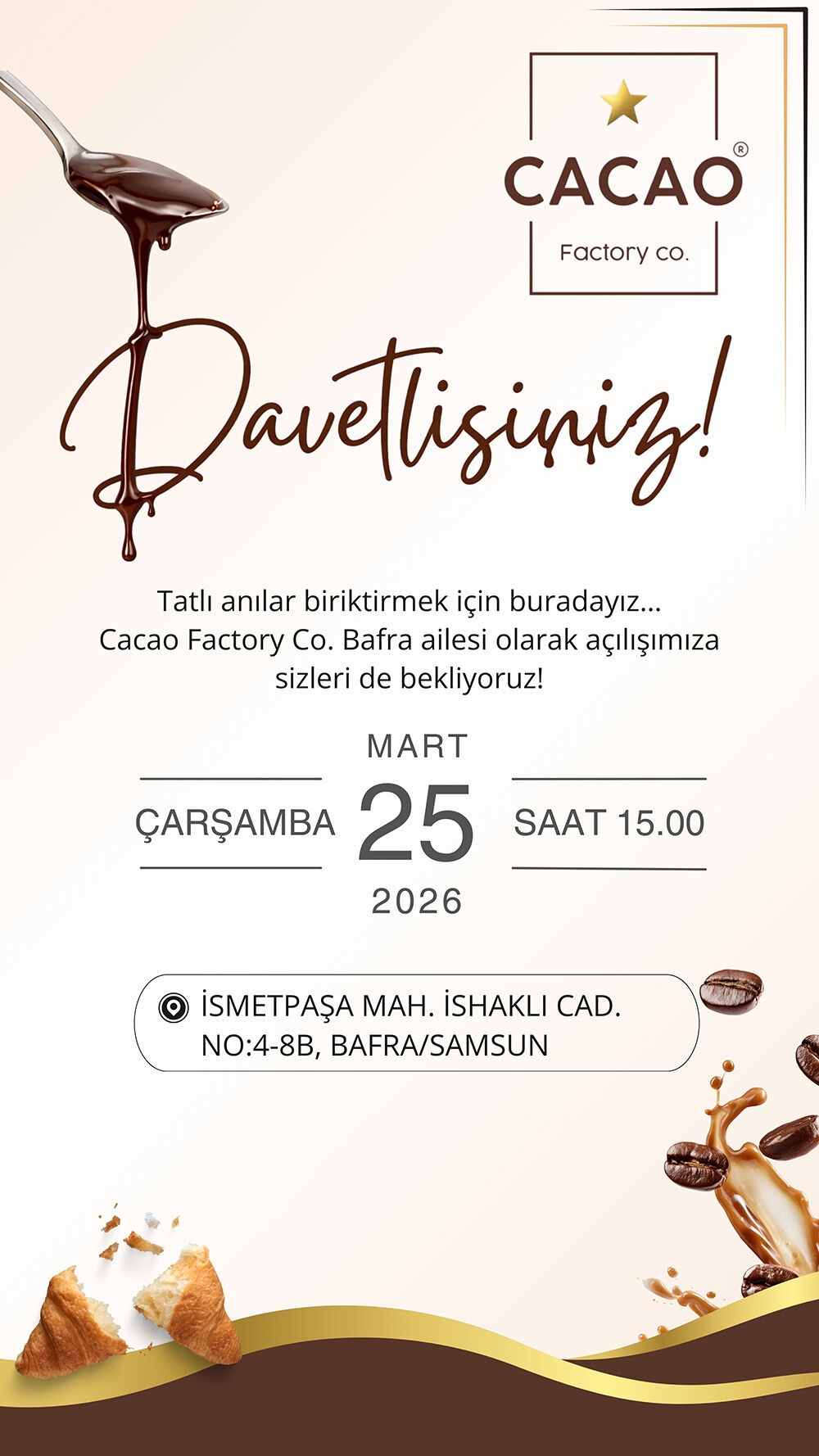 Bafra’da! Şık atmosferi, özel sunumları ve efsane tatlılarıyla Cacao Factory Çarşamba günü açılıyor.