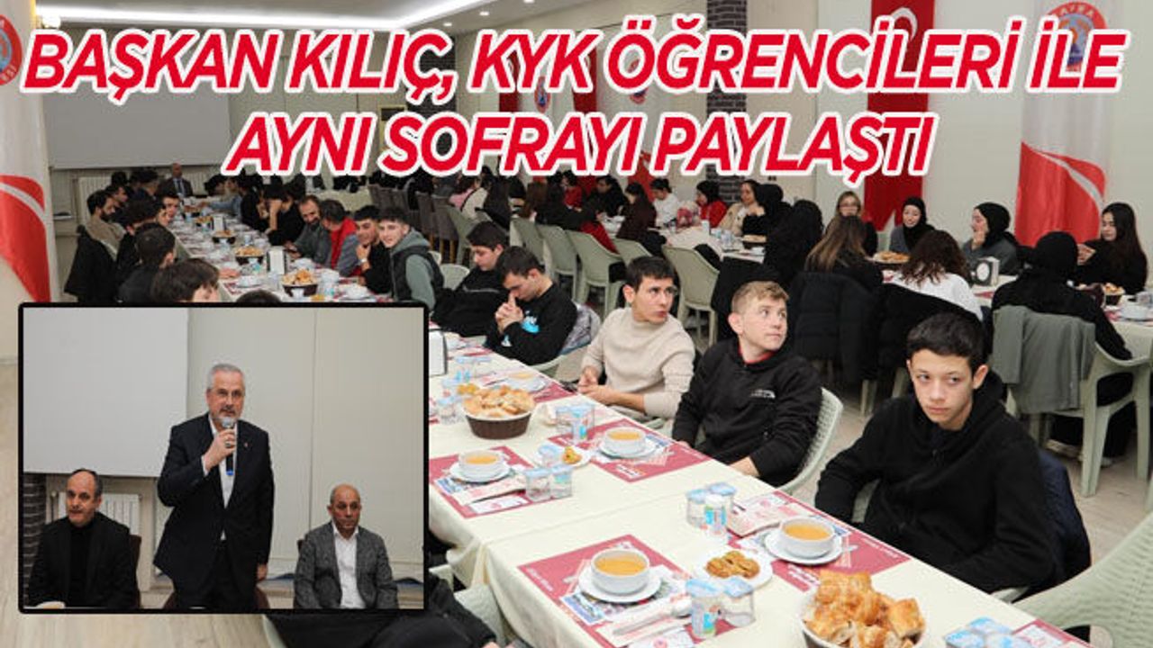 Başkan Kılıç, iftar öncesi yaptığı konuşmada şu sözleri kullandı: “Ramazan ayının bereketini, kardeşliğini ve paylaşmanın huzurunu siz kıymetli gençlerimizle aynı sofrada yaşamak bizler için büyük bir mutluluk. Davetimize icabet ettiğiniz, bizlerle aynı sofranın etrafında bir araya geldiğiniz için her birinize ayrı ayrı teşekkür ediyorum.