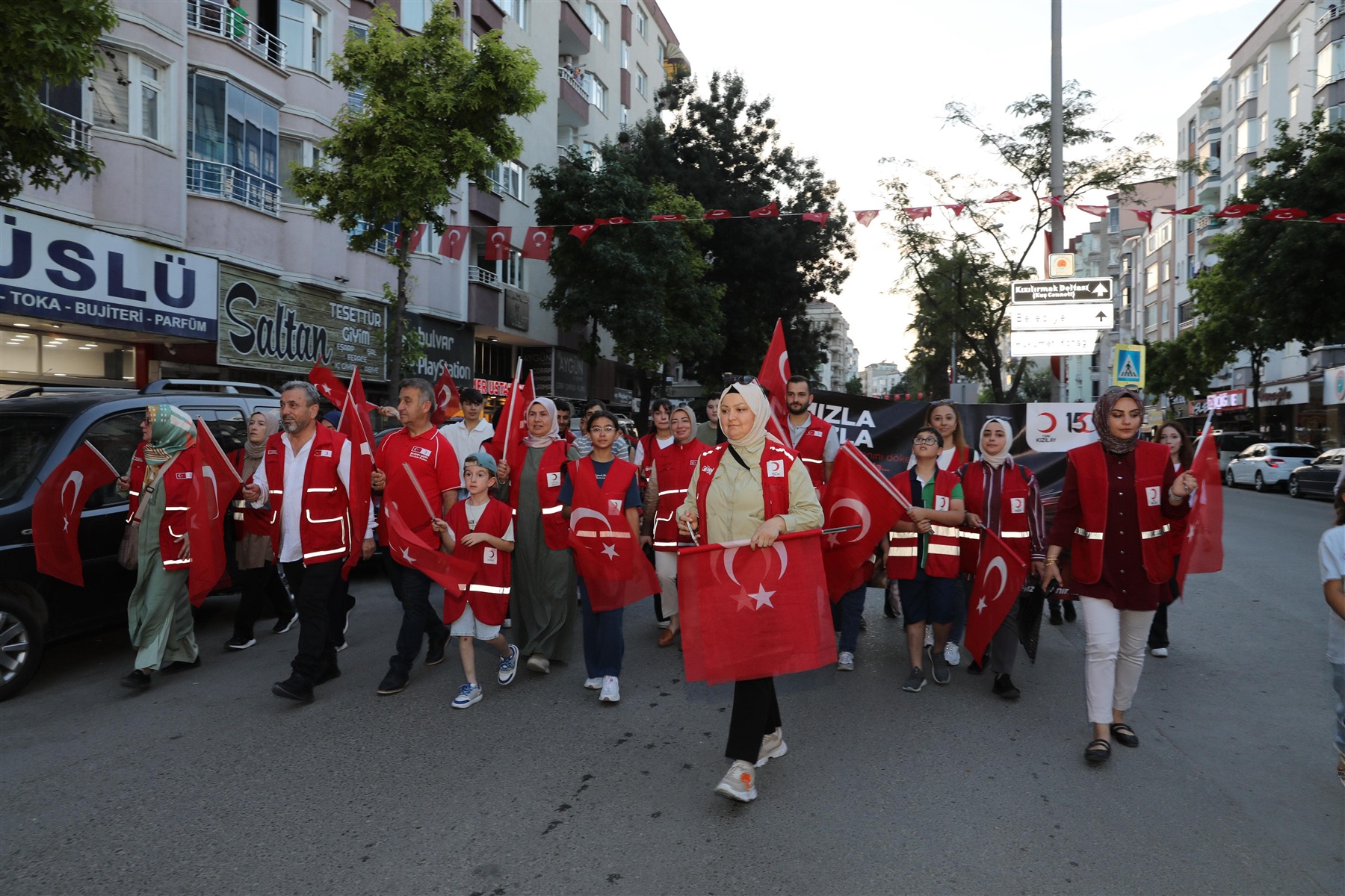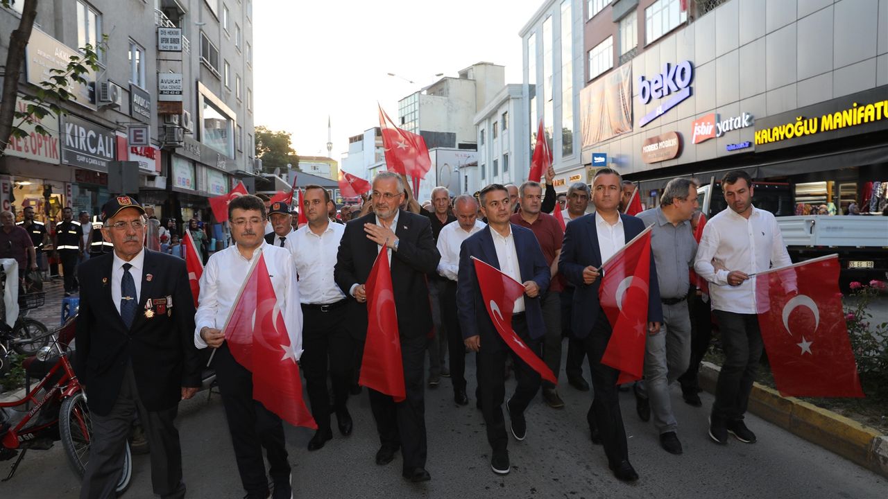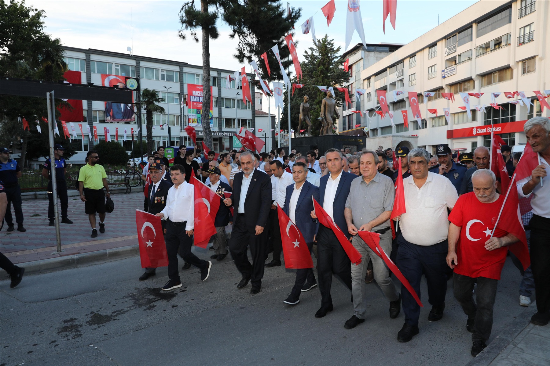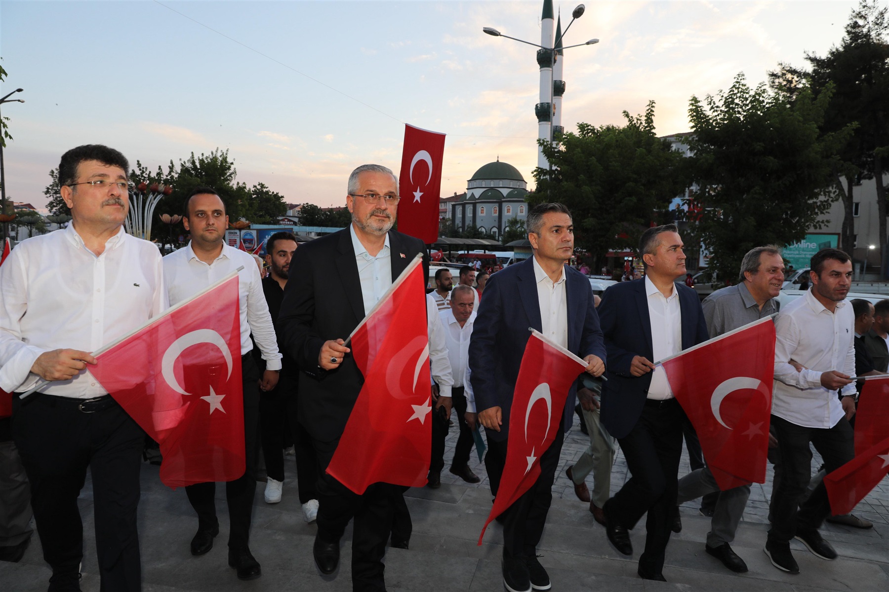 Akşam saatlerinde ise Cumhuriyet Meydanı'nda mehteran eşliğinde başlayan “Zaferin Adı Türkiye Demokrasi ve Milli Birlik Yürüyüşü” vatandaşların coşkulu katılımı ile gerçekleşti. Vatandaşlar tıpkı 15 Temmuz gecesinde sokakları hınca hınç doldurduğu gibi yine birbirine kenetlenerek sokakları doldurdu, omuz omuza 15 Temmuz Demokrasi Meydanı’na kadar yürüdü.