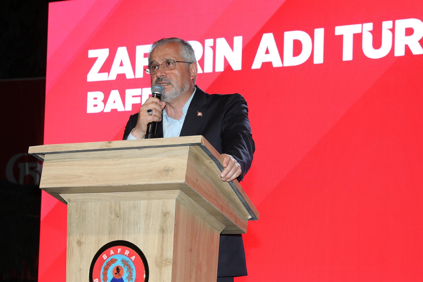 Etkinlik programında konuşan Bafra Belediye Başkanı Hamit Kılıç, “Bugün burada tarihimize altın harflerle kazınan 15 Temmuz zaferinin 9. yıldönümünü idrak ediyoruz. 15 Temmuz gecesi olduğu gibi bugün de vatanımızın bölünmez bütünlüğünü korumak için meydanları, sokakları, havalimanlarını dolduran genci yaşlısı, kadını erkeği 85 milyon vatan evladıyla omuz omuza biriz, beraberiz.