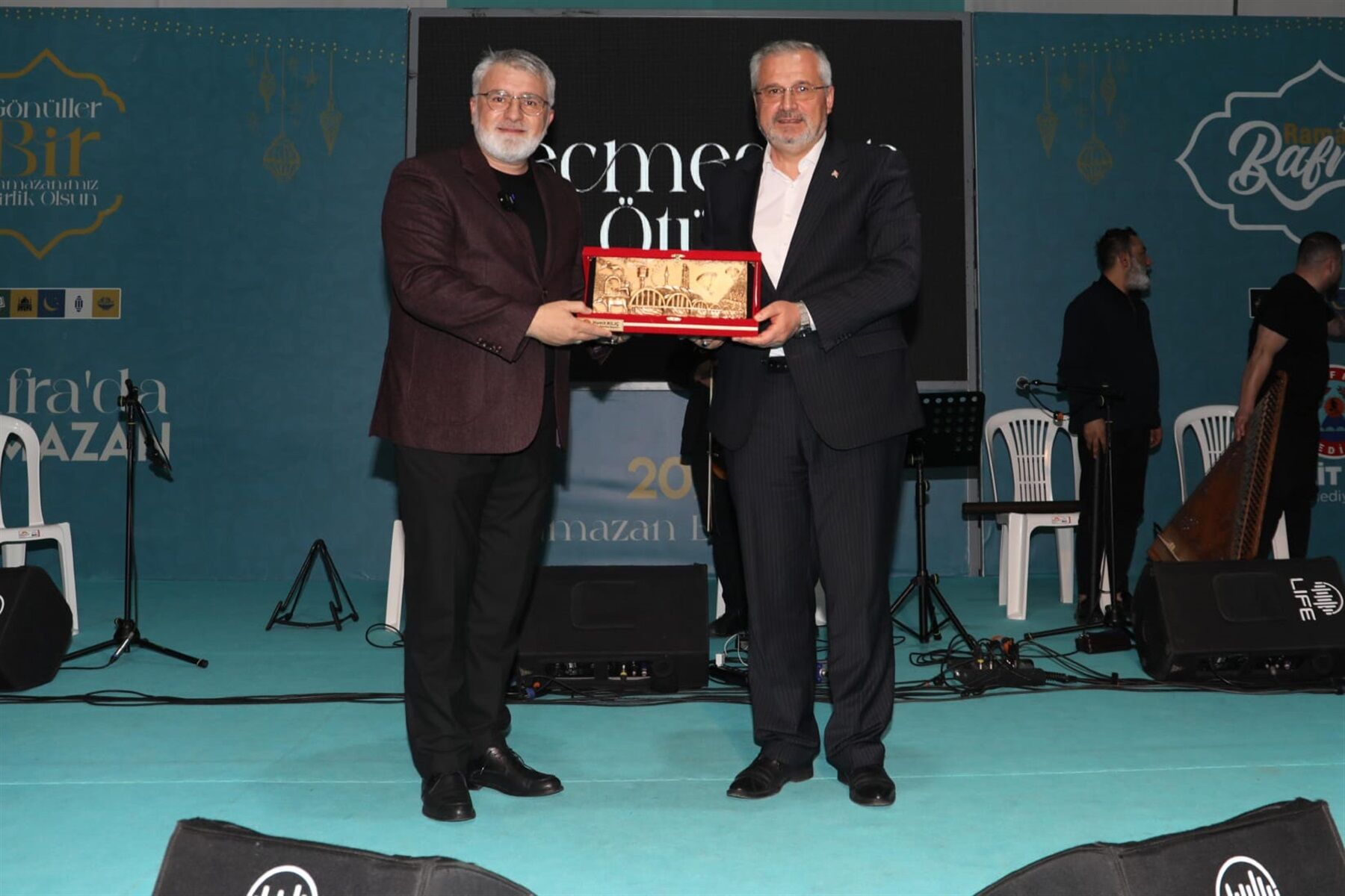Program sonunda Bafra Belediye Başkanı Hamit Kılıç, Müezzin Necmeddin Ötün’e Çetinkaya Köprüsü’nü temsil eden kabartma rölyef tablo takdim etti.