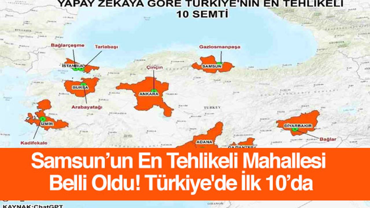 Yapay zeka tarafından oluşturulan analizde, Türkiye genelinde risk sıralamasına giren 10 bölge belirlendi. Listenin zirvesinde Ankara’nın Altındağ ilçesindeki Çinçin yer alırken, Samsun’da Canik ilçesinin Gaziosmanpaşa Mahallesi listeye girmesi şehirde geniş yankı uyandırdı.