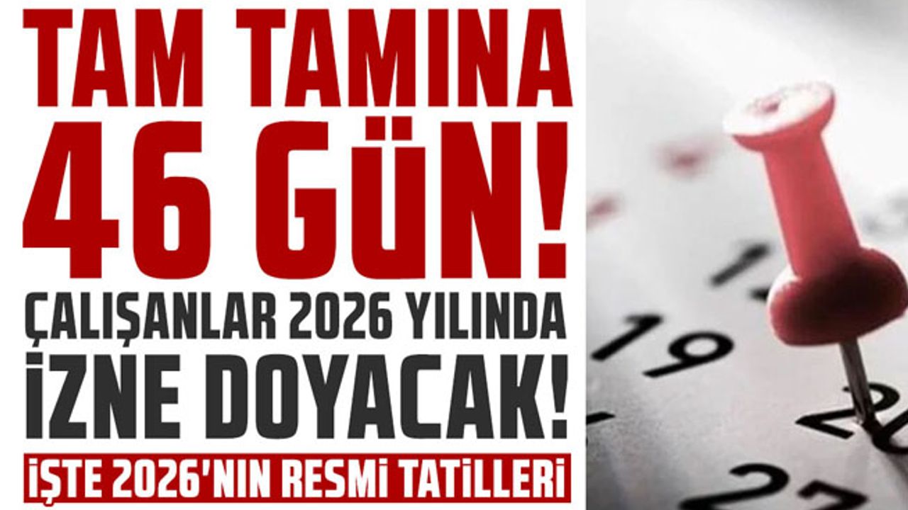 2026 yılı resmi tatil takvimi açıklandı. Yeni yılda çalışanlar, 14 günlük yıllık izinlerini resmi tatiller ve hafta sonlarıyla birleştirerek toplam 46 güne kadar tatil yapabilecek.